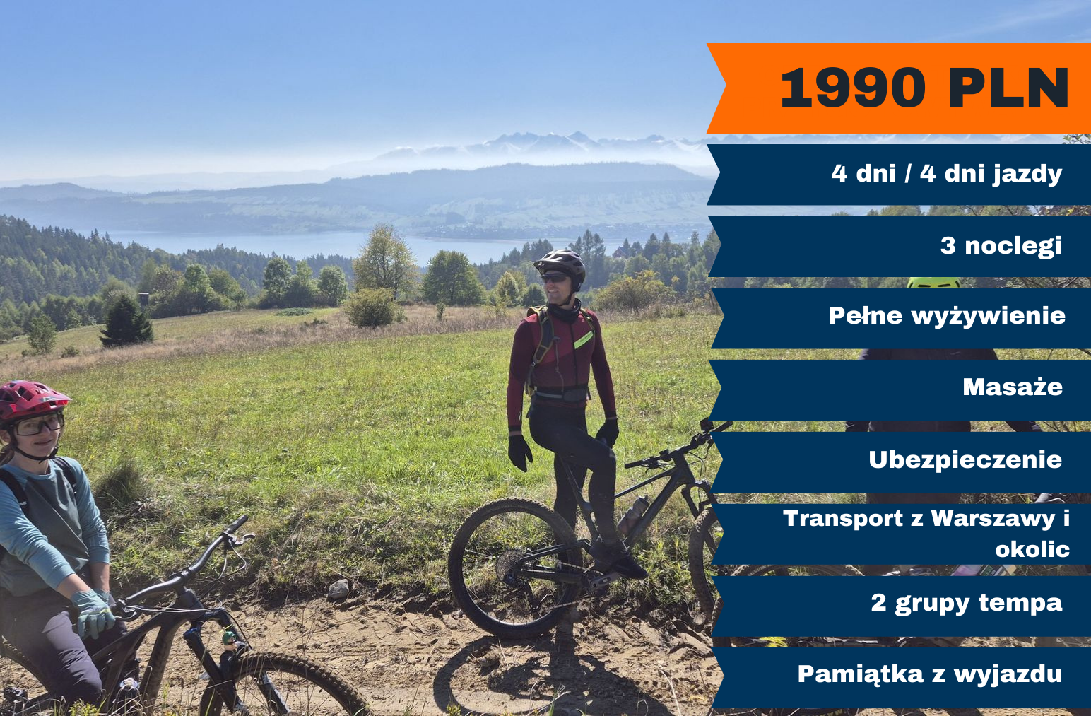 - 4 dni wspólnej jazdy po pięknych, dzikich górskich trasach ( w tym 3 dni góry + 1 dzień bike-park lub 4 dni góry )